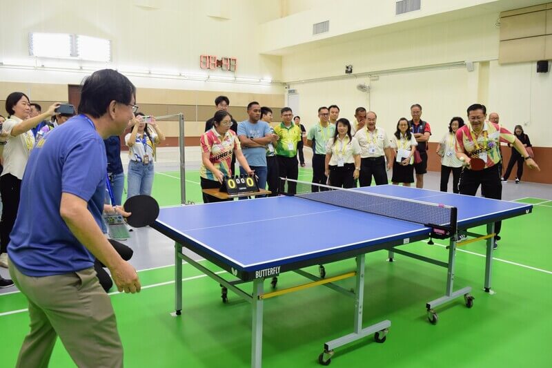 开球仪式上,槟州首长曹观友亲自打出保龄球,陈友信与锺灵独中校长兼工委会主席吴维城挥拍打乒乓,一众嘉宾也奉献了精彩的羽球表演。